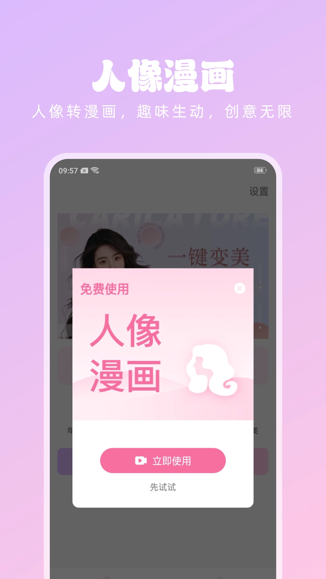 3、人像漫画,实现人像转漫画,风格趣味生动,快来创作独属于你的漫画形象吧。