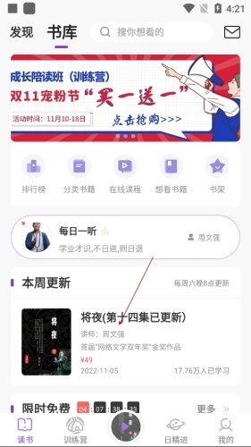 666书友会可以进行音频的,你可以将自己喜欢的音频进行数据的缓存,这样用户即使在没有网络的情况下也可以更好的使用软件,并聆听自己喜欢的书籍和课程。