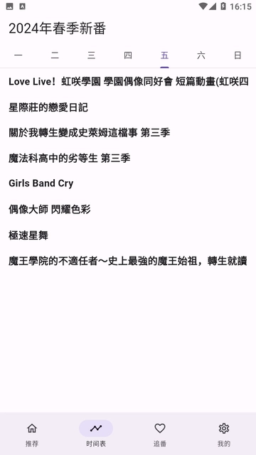 番剧时间表