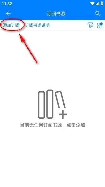 进入“订阅书源”界面,接着点击“添加书源”,具体位置如图所示。
