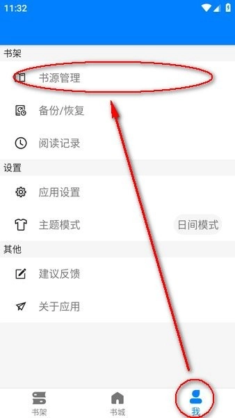 在打开星空看书应用后,找到界面右下角的“我”并点击,接着点击“书源管理”。