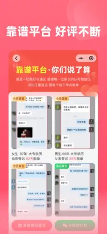 各位家长能够在平台自由筛选,找到适合自家孩子的对象,非常的实用;