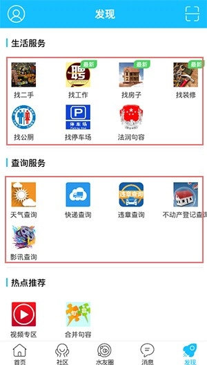 3、点击进入社区,其中设有招聘求职、房屋租售、车友之家、运动快乐等多个板块,同时能够查看最新的本地资讯。