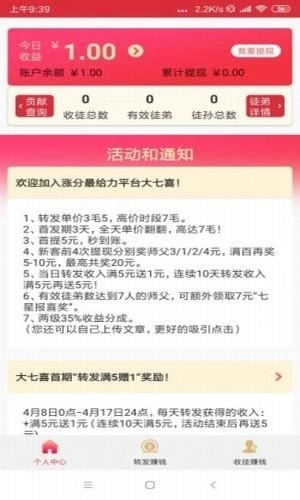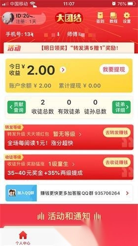 2. 在软件里,用户能够招募学徒。当学徒进行前几次提款操作时,师傅会得到一定数额的现金奖励。