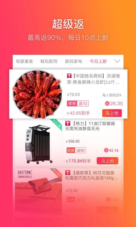 2、超级返:每日全新上架超千款优质好物,不仅有大额优惠券,还能享受超高返利,让实惠贯彻到底。
