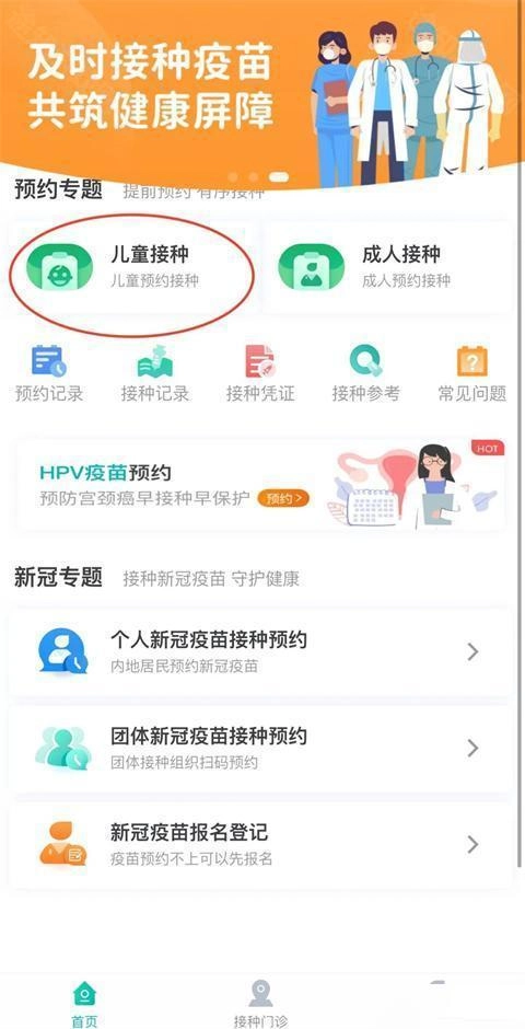 1. 打开软件后,点击“儿童接种”选项。