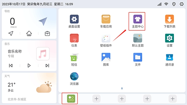 1. 首先在首页点击下方的应用图标,接着点击主题中心。
