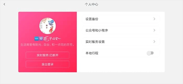 通过【个人中心】,你能够登录微信账号,进而实现设置的备份与恢复以及享受实时服务。