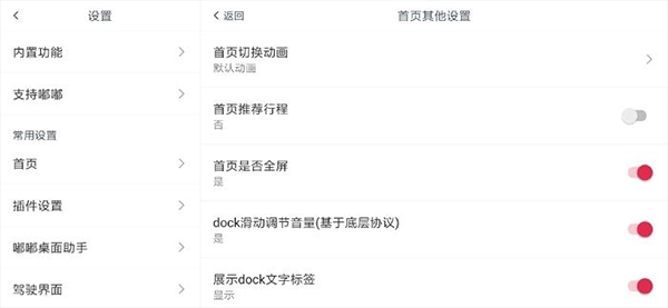 9、{其他} 包含一些较为繁杂的设置,主要用于对切换动画、行程推荐开关、是否全屏以及文字标签等进行调整。