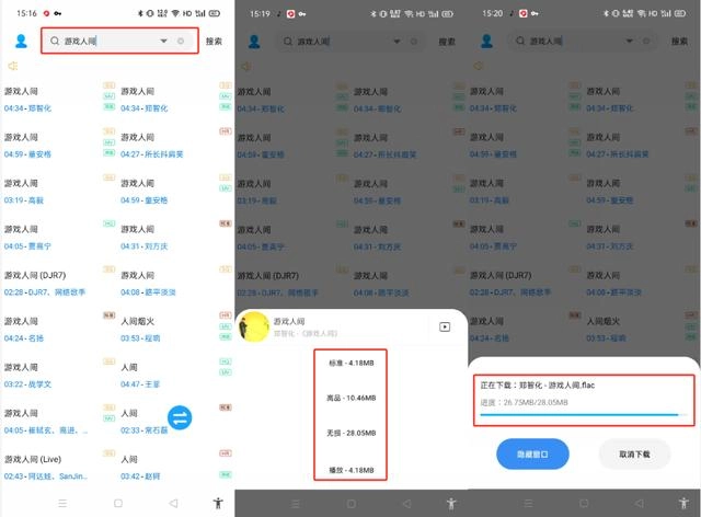 搜索:打开后呈现出的是极为简洁的搜索界面,在搜索栏中输入我们想要查找的音乐名称或者人名,就能搜索到心仪的音乐。