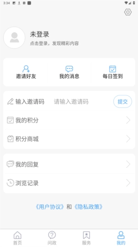4、在【我的】页面,用户能够赚取积分,在【积分商城】中用积分抵换礼品,同时还能管理与用户相关的消息和事项。