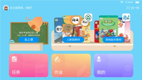 粤教翔云数字教材应用平台 3.0(学生端)具备数字教材、上课模式、任务接收与完成、作业接收与完成等功能,为师生在课中及课外的互动创造了条件。