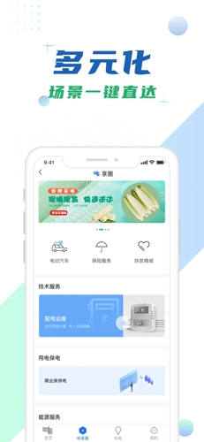 全网上线扶贫商城、保险超市、电动汽车服务,为你带来更为丰富贴心的服务;广州、深圳、佛山地区上线配电设备运维、电气厨房、电动汽车充电设施建设、分布式光伏等用电增值服务,为你提供个性化的用电服务。
