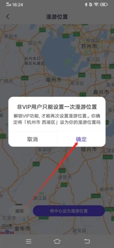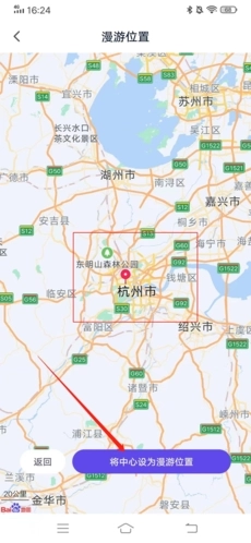 4、于地图上挑选一个漫游位置,挑选完成后,点击下方的“将中心设为漫游位置”按钮。