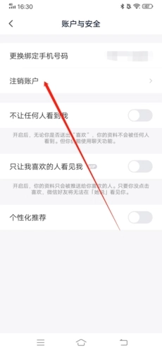 3、在此处,我们可以看到“注销账户”选项,点击该选项。