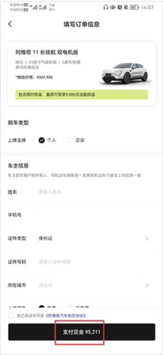 4、待订单信息全部填写完毕,支付定金后,就能完成预定。