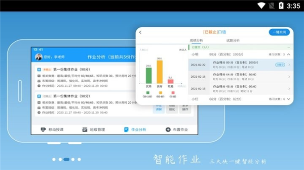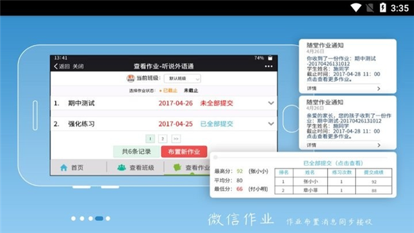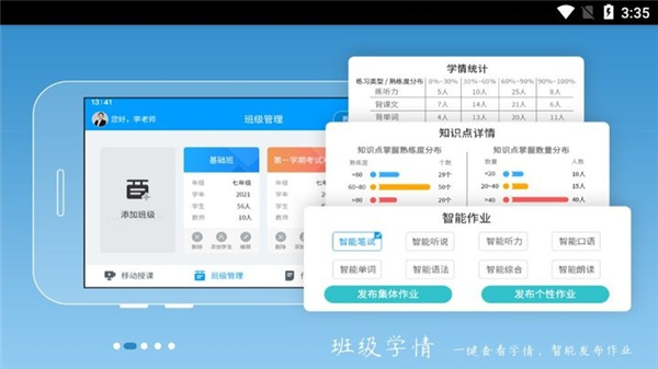 2. 外语通教师版便于教师在线迅速浏览详细信息,教师还能够关注班级数据。