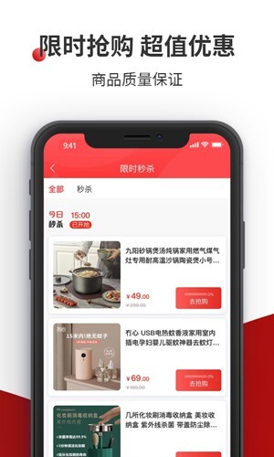 3、为您的生活带来便捷且优惠的消费服务,让您购物更省钱,还设有限时秒杀活动。