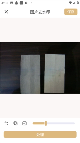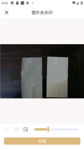 3、使用手在需要去除水印的部位进行涂抹,涂抹完毕后点击处理。