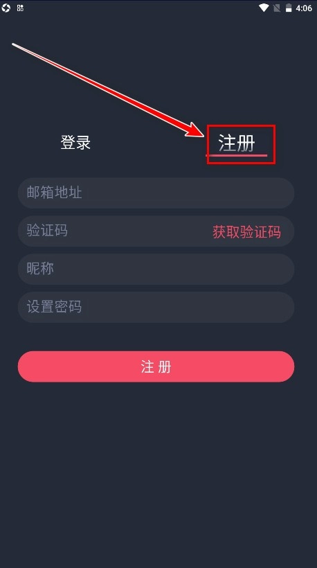 4、依次输入邮箱地址、验证码、昵称以及密码,随后点击下方的“注册”按钮即可完成操作。