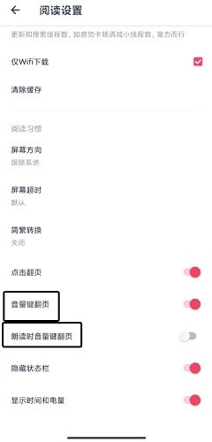 2、于阅读设置页面,能够进行音量键翻页以及朗读时音量键翻页的设置。
