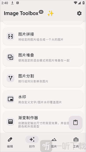 Image Toolbox 是一款功能极为强大的图片处理软件。借助它,你能轻松获取海量优质滤镜,这些滤镜类型丰富、风格多样,涵盖复古、高清、蓝调等。如此一来,你可依据自身需求自由挑选与运用,迅速生成各类高质量的图片成品。