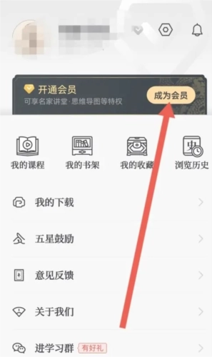 3、进入个人主页,在开通会员区域点击【成为会员】。
