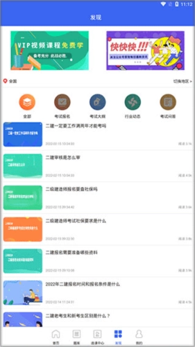 4、【发现】页面主要呈现二建考试相关的资讯与问答,对于初次接触这类考试的用户而言,十分贴心,可让他们了解到诸多考试知识。