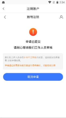 6、如此一来,我们便成功提交了账号注销申请,稍作等待,一段时间后账号就能成功注销。