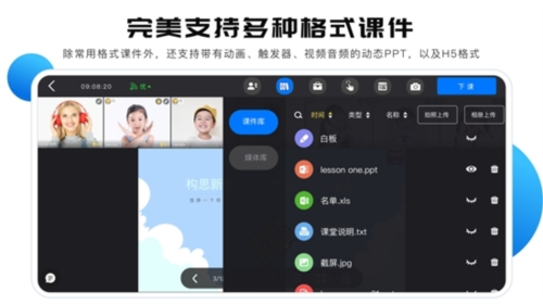 5、具备多用户音视频互动功能,同时支持多种类型的动态课件。