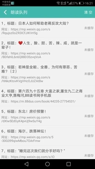 4、具备读取队列功能。在临睡前,挑选几篇你想听的文章添加到队列中。朗读助手会依序进行朗读。当阅读结束,它便会自动停止朗读,伴你惬意入眠。