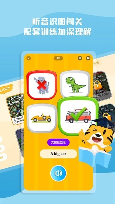 3、创新的情景互动功能让孩子身临其境地参与故事发展,自然提升英语能力。