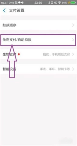 3. 于“支付设置”里找寻“免密支付/自动扣款”,并点击进入。