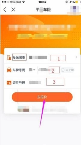 4. 按照要求填写必要的车辆信息,然后点击“去报价”。
