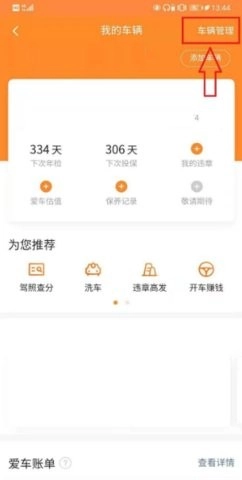 3. 点击右上角的“车辆管理”。