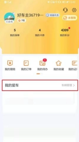 2. 在个人中心选择“我的爱车”。