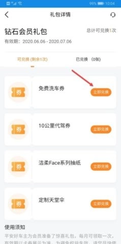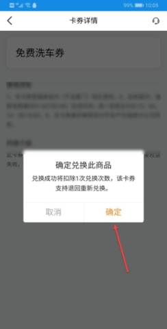 5. 找到免费的洗车券并点击“立即兑换”。