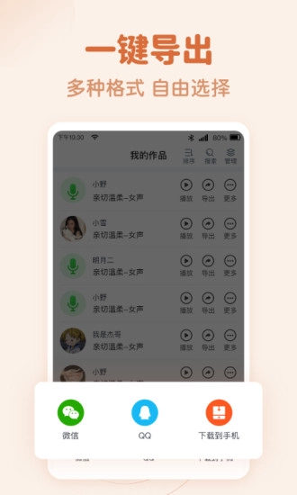 一款集专业录音、在线翻译等多种功能于一身的文字转语音配音软件!可应用于商场店铺广告促销配音、地摊叫卖录音制作、英语听力音频制作、有声朗读等各类场景的语音合成。
