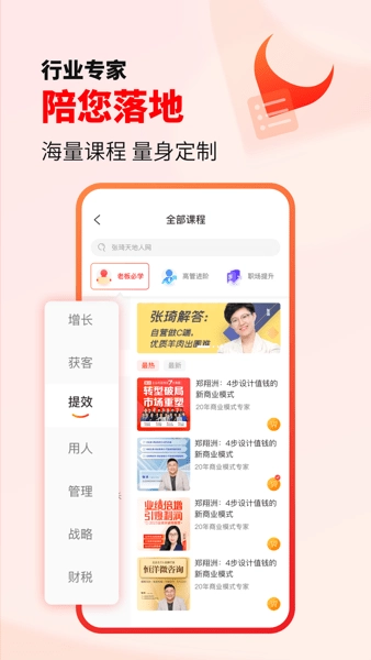 全媒体运营高效获客:凭借卓越的全媒体运营实力,我们成功搭建起流量入口,吸引众多优秀名师与知识内容创作者入驻平台。同时,秉持“精品策略”精心雕琢,打造出覆盖企业管理、资本模式、营销创新等多个领域的口碑课程体系。