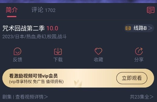 1、用户在进入后,点击其中一部动漫进入页面 ,可以看到按钮