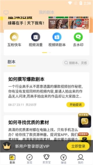 视频转剧本、去除水印、热门素材集结……从多方面为创作者提供有力支持。