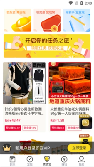 5、卖货宝界面为我们提供了部分小商品的售卖服务。
