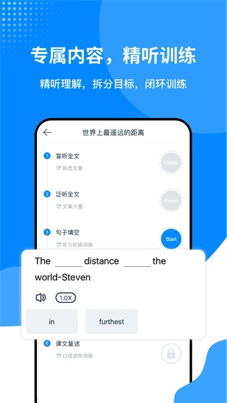 增强听力的趣味性,通过单句循环精听的方式来强化理解能力,利用单句听写检验听力效果。