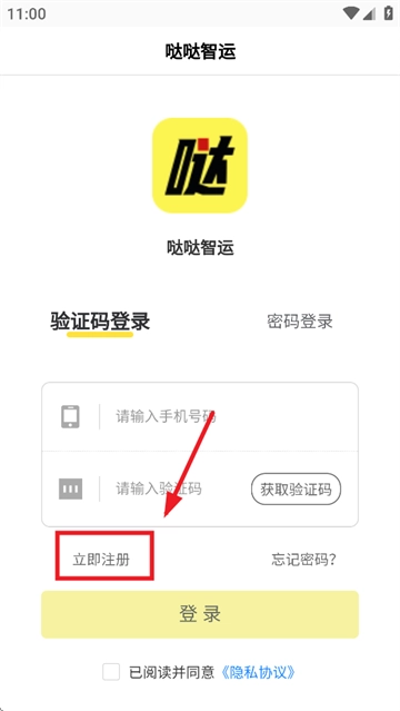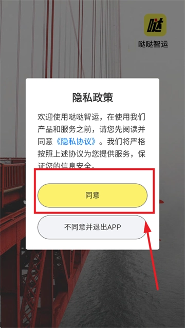 首先安装哒哒智运,安装完成后打开该应用,进入应用时需先同意隐私政策。