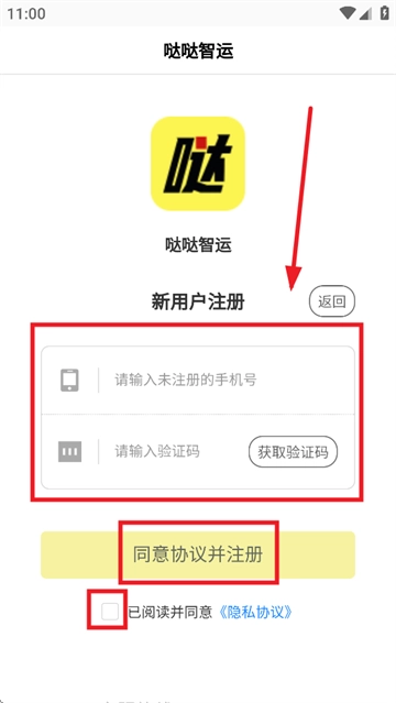 请输入手机号码、验证码,勾选“已阅读并同意《隐私协议》”,随后点击“同意协议并注册”,便可完成操作。
