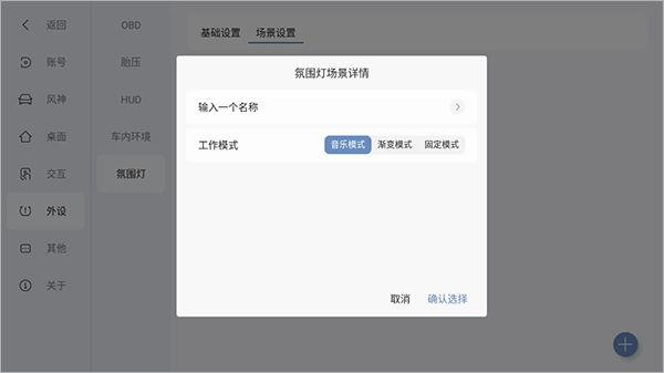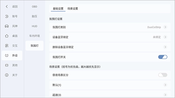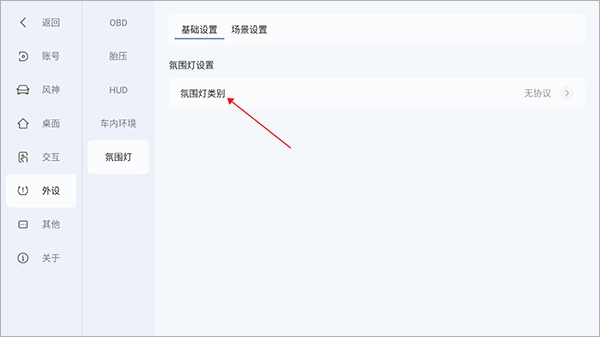 3、首先在基础设置里选择并确定氛围灯的类别。