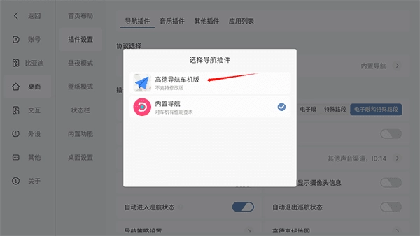 2. 进入之后,按顺序点击桌面 - 插件设置 - 导航插件功能