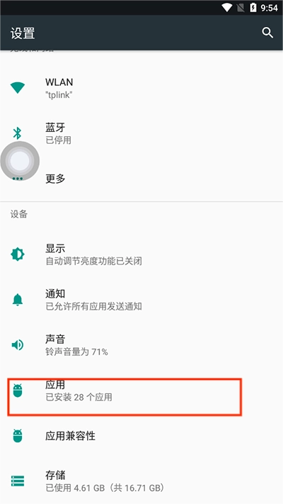 2、在“设置”中找到“应用”选项;