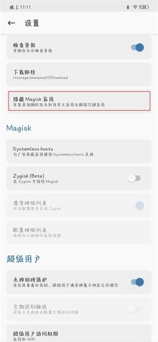 首先,我们要做的是将Magisk最新版本身隐藏起来。