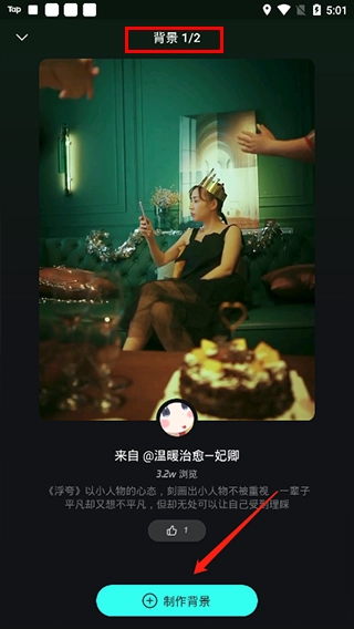 4、不仅支持自行创作背景,而且在上分还能看到目前该音乐共提供了2个视频背景。